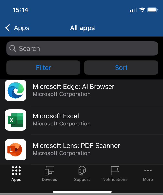 Tip: You can also view the Company Portal online at portal.manage.microsoft.com/devices