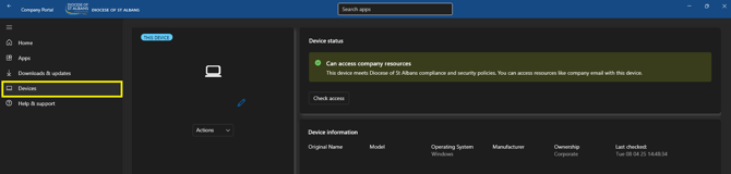 - A list of all diocesan devices that are registered to you are displayed along with their compliance current status: