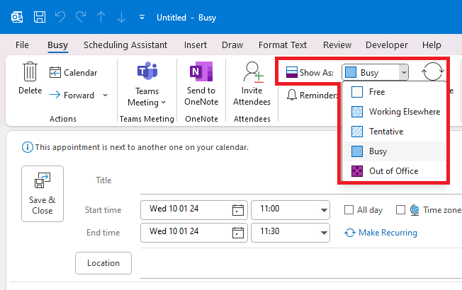 Change calendar appointment 'Show As Busy/Free' in Outlook Desktop