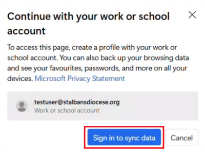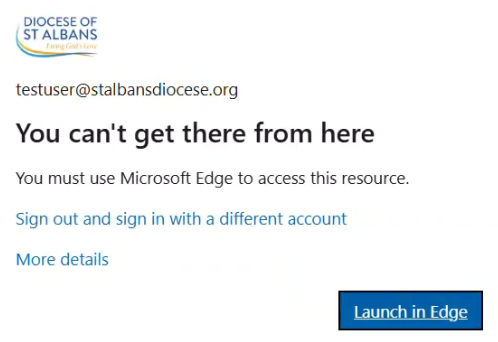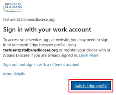 Note: When you register your device, Microsoft Edge will create a separate profile for your diocesan account. This keeps your diocesan browsing and data completely separate from any personal information on your device. The Diocese of St Albans cannot access personal data.
