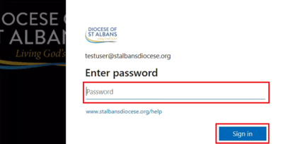 You should see the Microsoft sign in prompt. If instead you see email for another Microsoft account, sign out of that account first (top right). You can sign back in once this setup is complete.- Enter your diocesan email address > Next
