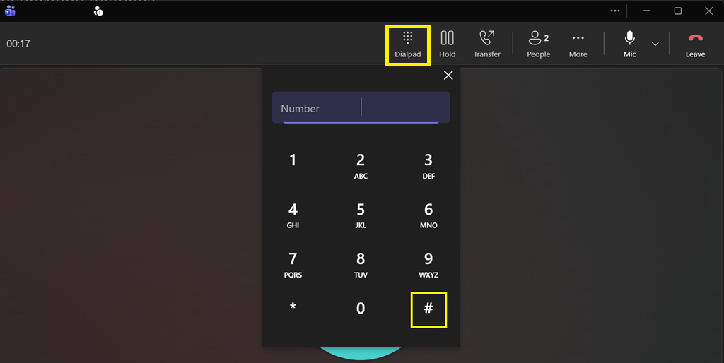 If you've used Teams Phone to answer the call, press the Dialpad button first to show the keypad where to can press the pound / hash # key.