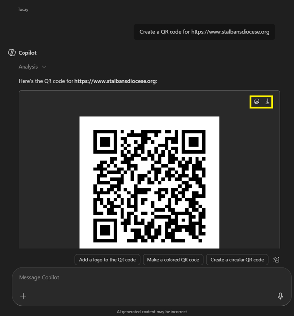 - eg. "create a QR code for https://www.stalbansdiocese.org"