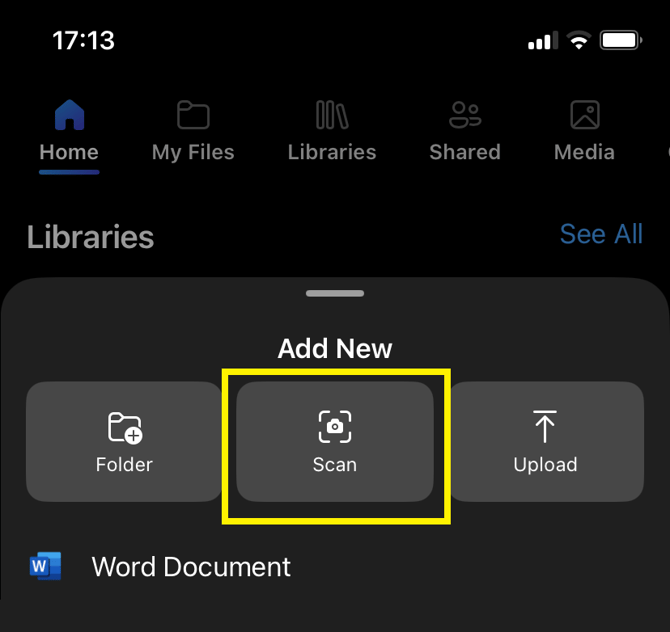 Scan multiple pages directly to your OneDrive using your device's camera. See article: