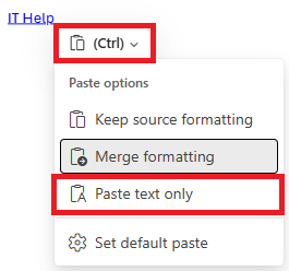 If you're pasting into an app or website in Microsoft Edge, you can also right-click, select Paste as on the context menu, and then select Plain text from the sub-menu.