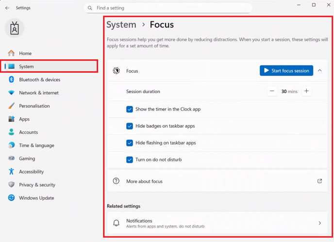 Use DND & Focus (formally presenter mode) in Windows to reduce distractions